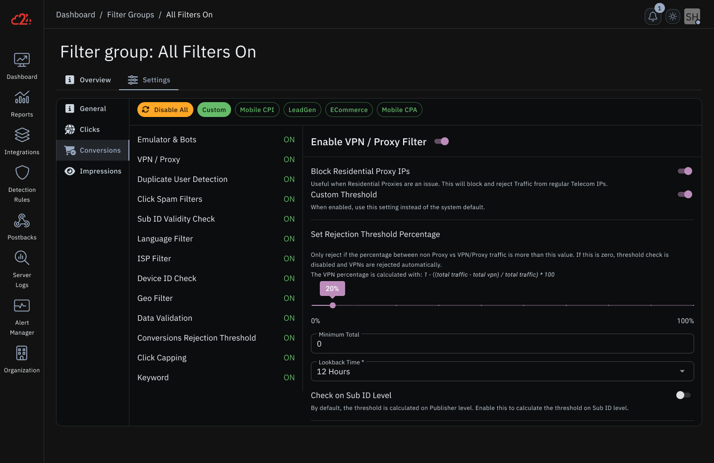 It makes a big difference if you run Mobile Apps or eCommerce offers which is why we offer vertical specific presets (e.g. Search, CPC, Mobile Apps or eCommerce) but also allow full customisation.