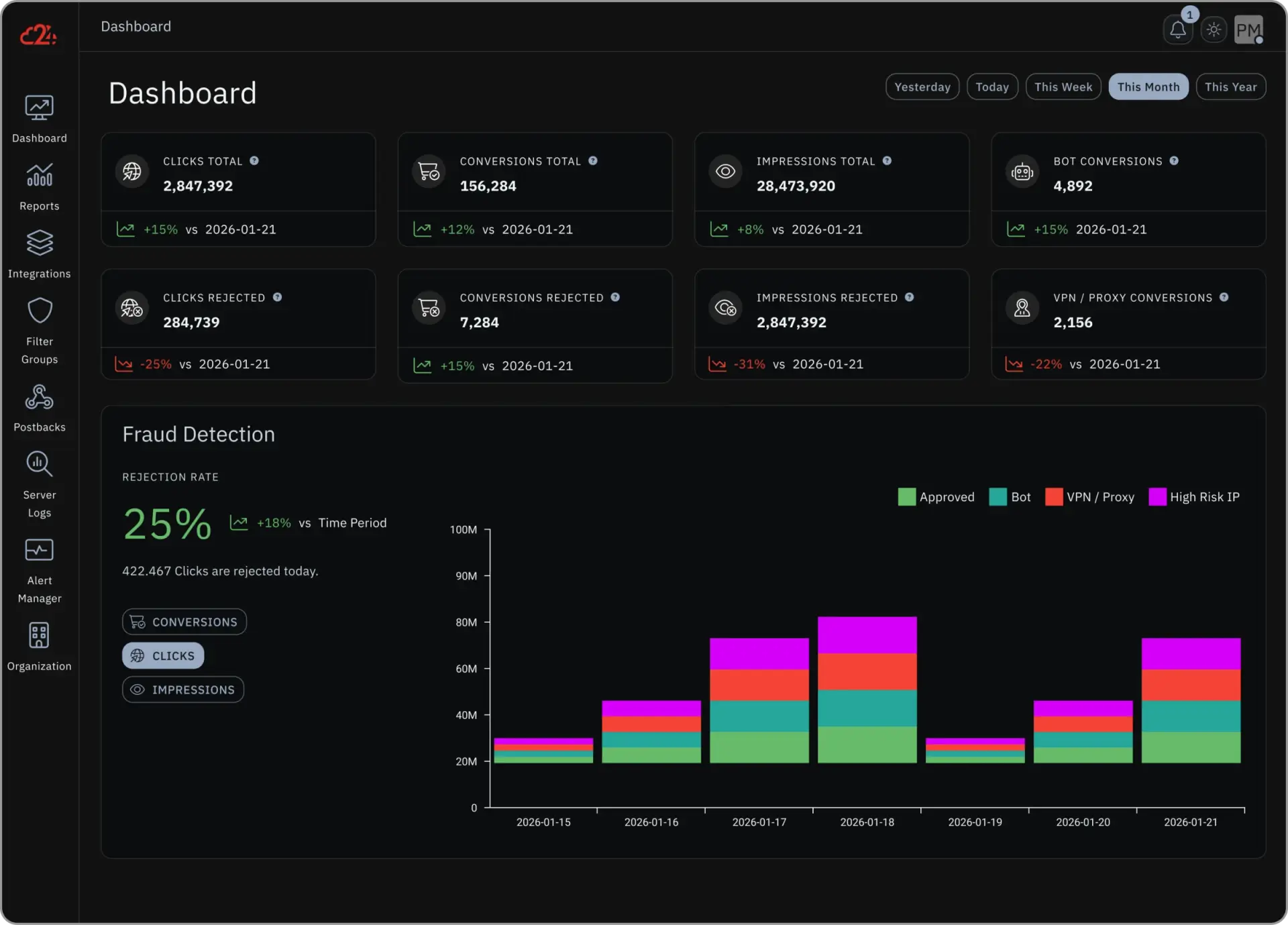 Stop fraudulent Affiliate Traffic and identify fake conversions, bot registrations, cookie stuffing and much more. Our real-time click fraud detection & affiliate fraud prevention blocks malicious traffic in realtime.