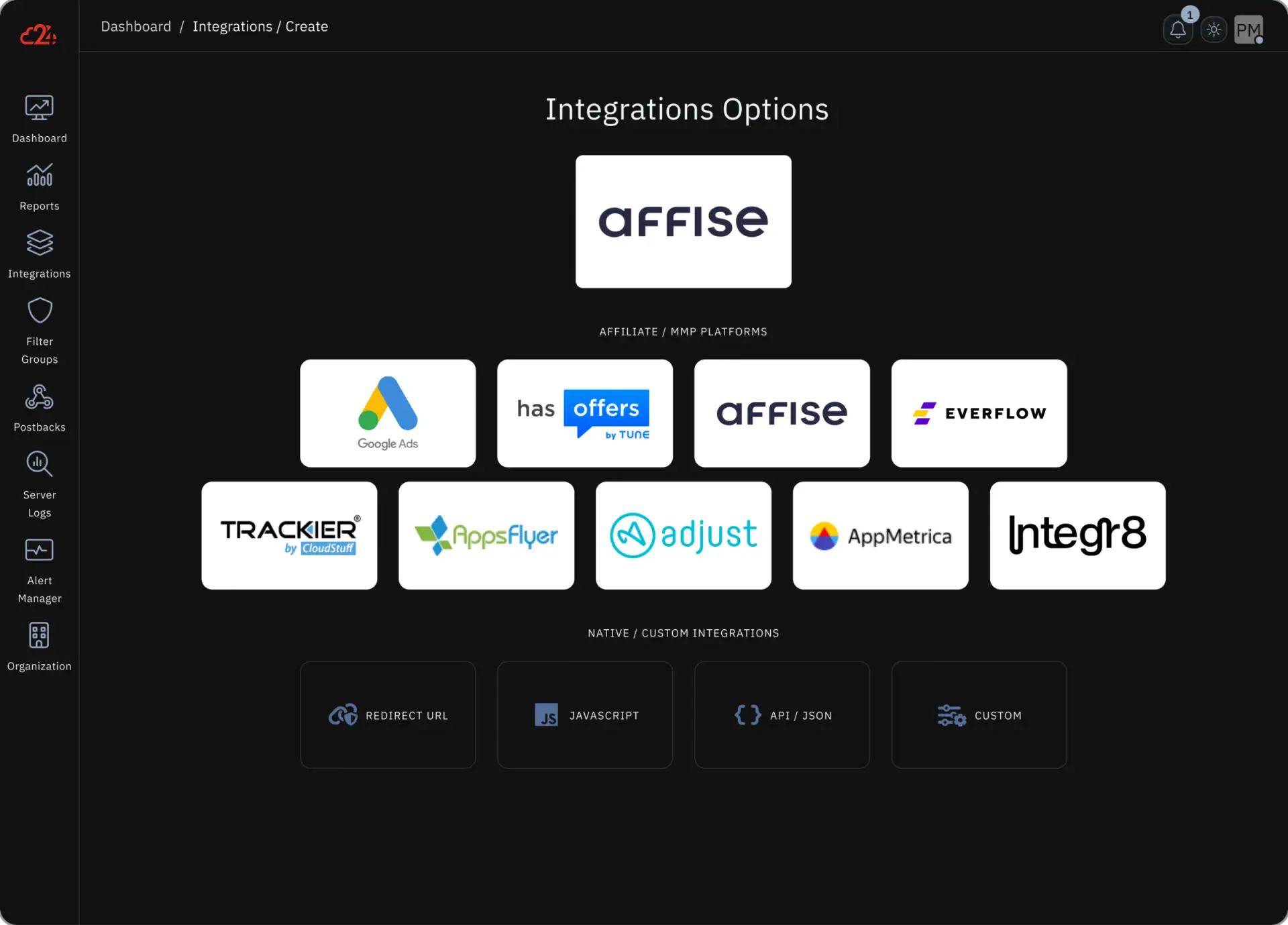 The integration is done in 30min and we automatically sync results back to Affise. No other solution offers this level of integration.